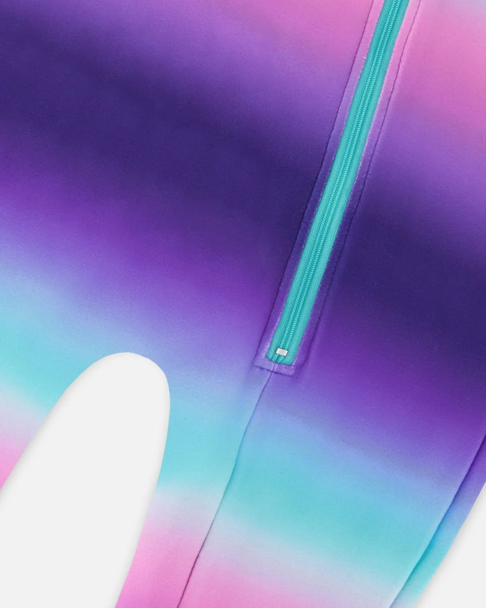 It's essential to be comfortable when wearing a snowsuit, so we've designed this one-piece base layer in super soft and thick brushed jersey to keep little ones warm yet able to move freely. Our thermal underwear jumpsuit features long raglan sleeves, a round neckline, an asymmetrical zipper closure, and an allover purple gradient print.