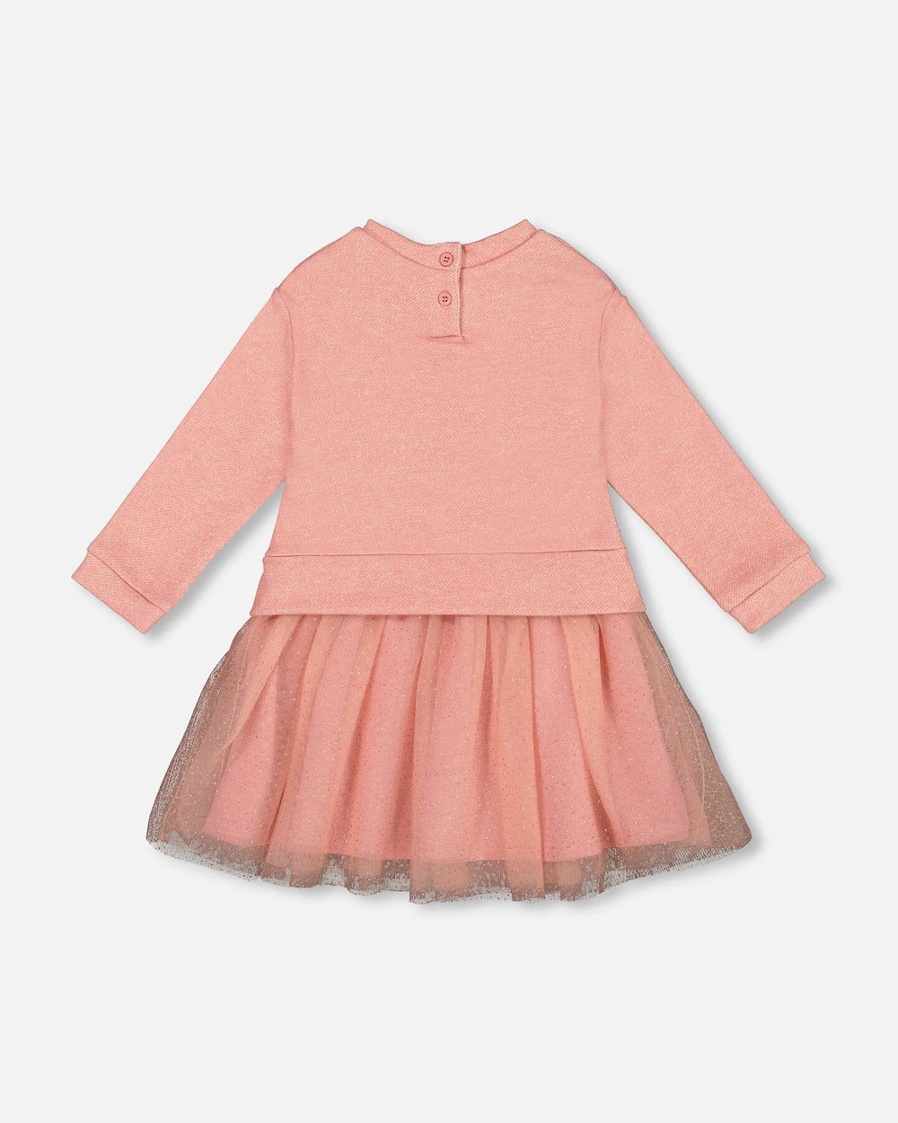 The Bi-Material Dress Dusty Pink With Mesh Skirt and Unicorn brings a magical twist to casual dressing. This dreamy sweatshirt-style dress features a soft french terry bodice with a sparkly unicorn print, and a flared mesh skirt with an allover polka dots print for extra flair. With a comfy fit and playful style, it’s perfect for parties, school, or weekend adventures.