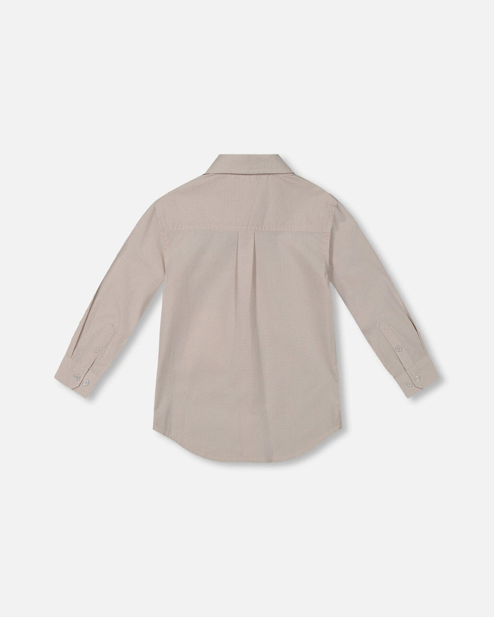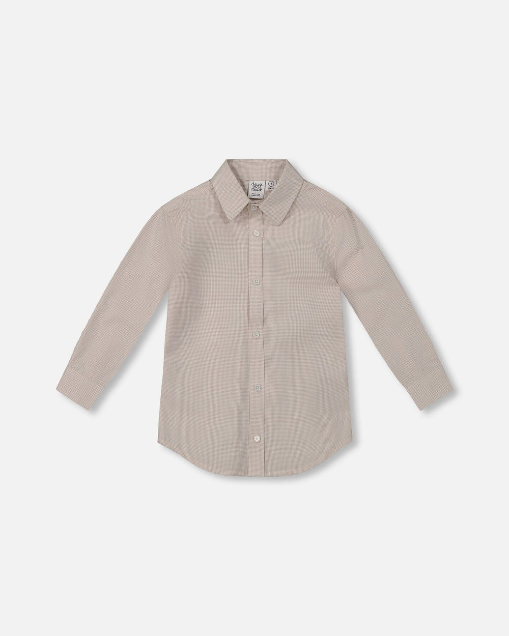 Our Long Sleeve Button Down Shirt Light Taupe is a must-have in every little boy's wardrobe. Dressed up or dressed down, this shirt features a classic look with a button front placket, a collar, and long sleeves with button cuffs. It mixes and matches perfectly with every bottom in our Very Chic...Very Choc collection.
