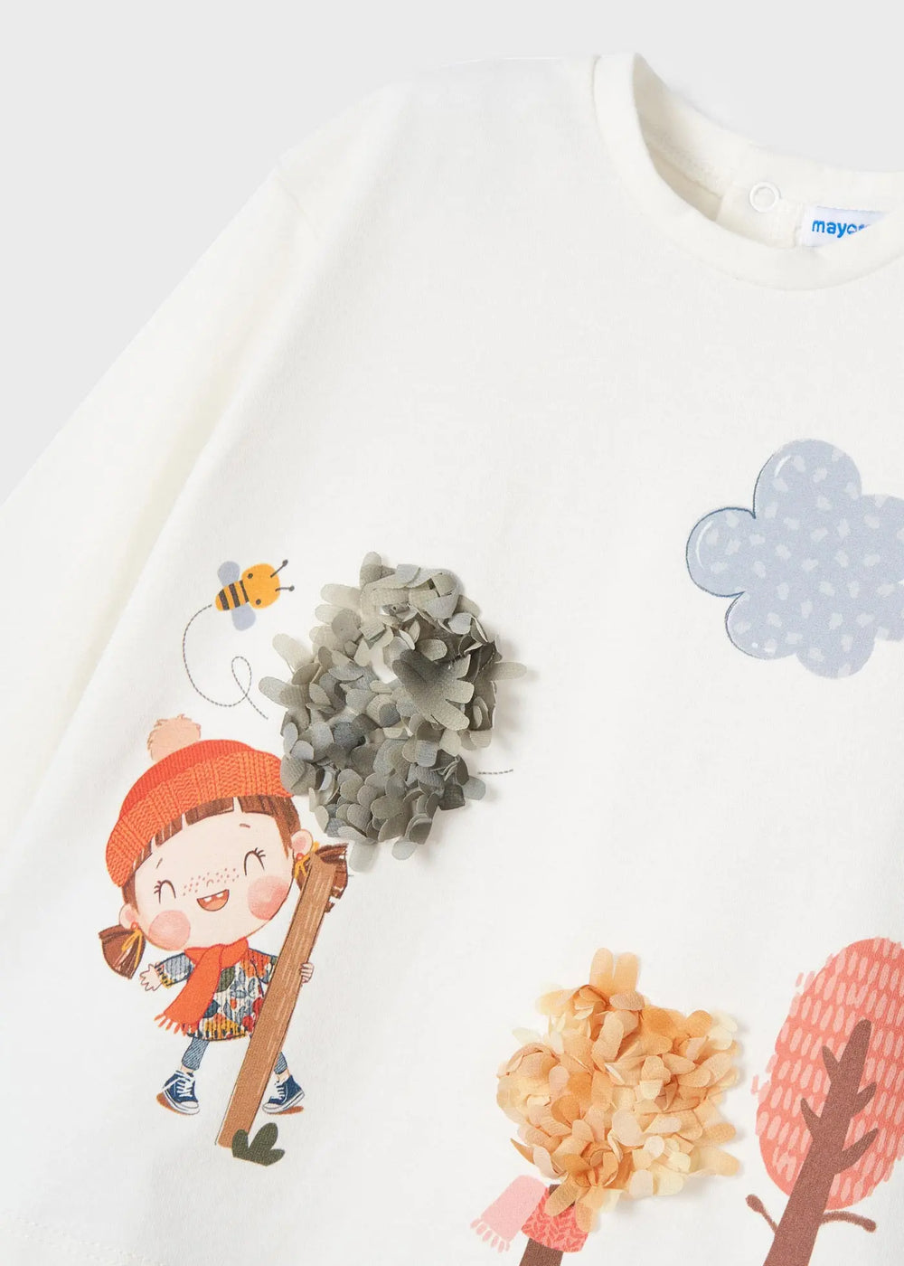 Long sleeved Shirt for baby. Small opening on the back with a button fastening to allow the garment to be put on easily.