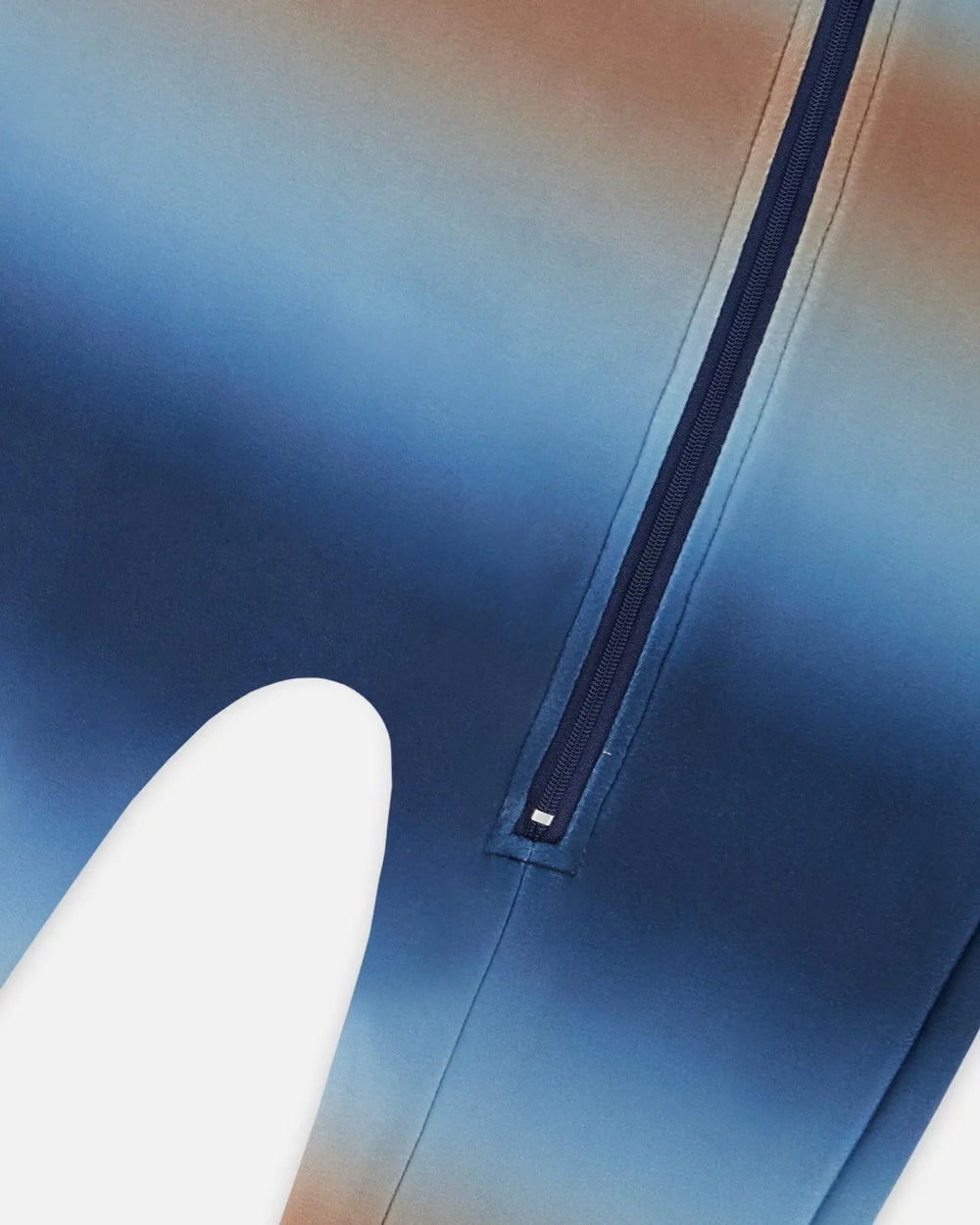 It's essential to be comfortable when wearing a snowsuit, so we've designed this one-piece base layer in super soft and thick brushed jersey to keep little ones warm yet able to move freely. Our thermal underwear jumpsuit features long raglan sleeves, a round neckline, an asymmetrical zipper closure, and an allover blue and beige gradient print.