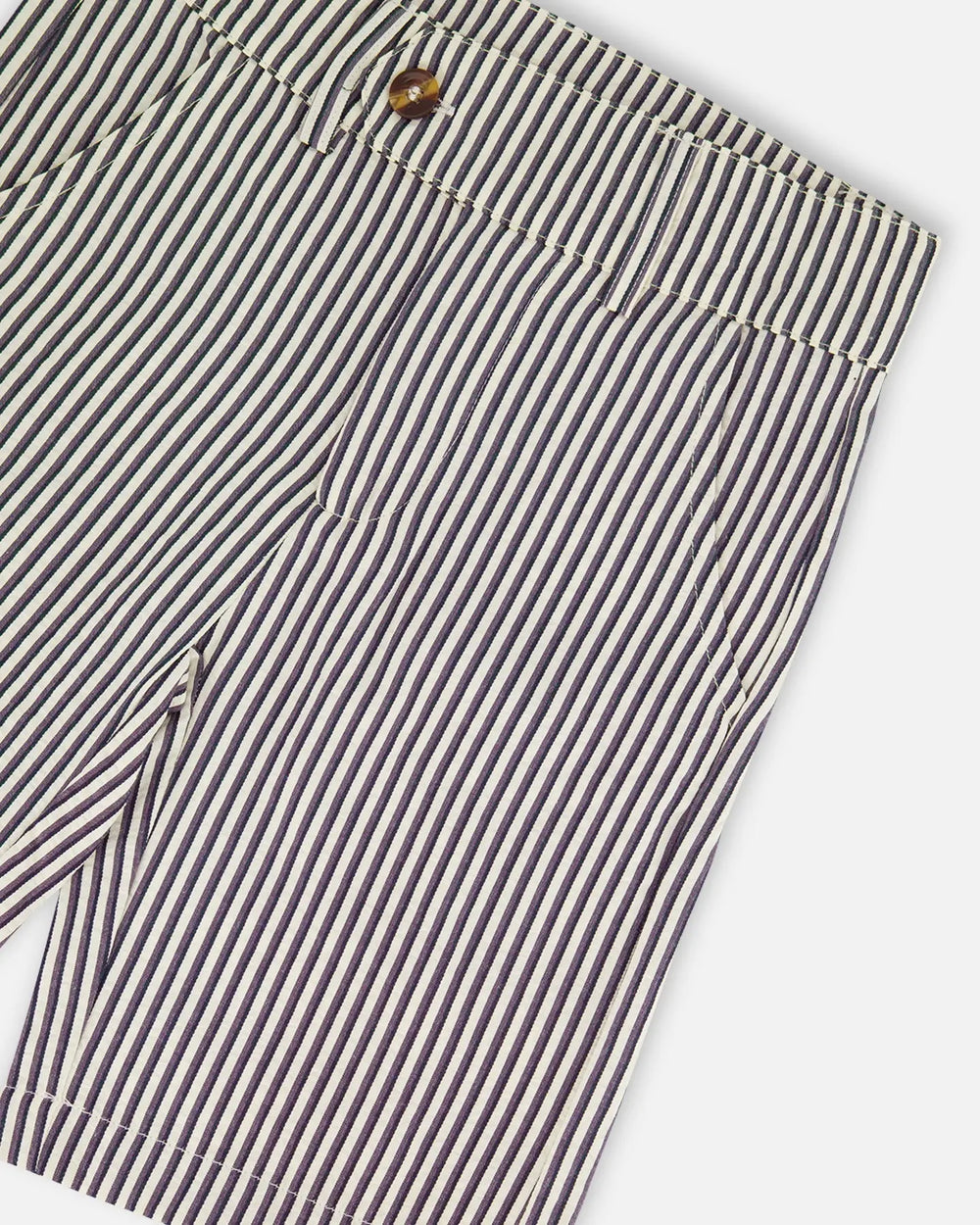Slant Pocket Bermuda Shorts Navy Blue Striped