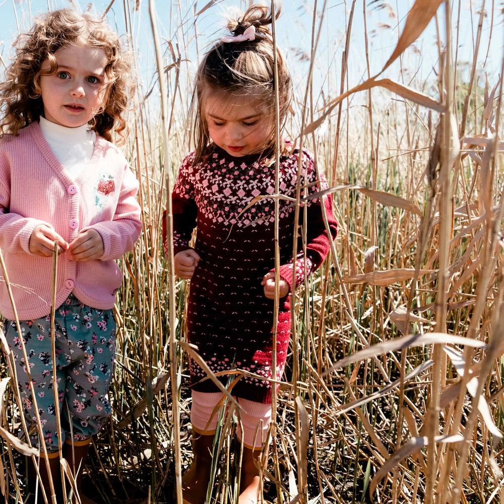 Make chilly fall and winter days a bit more stylish with our ski-inspired Knitted Long Sleeve Dress Burgundy and Pink. This sweater dress is made from a soft viscose/poly/nylon blend and features a fairisle pattern across the chest and sleeves, a round neckline, and rib knit trim at the neck, cuffs, and hem.