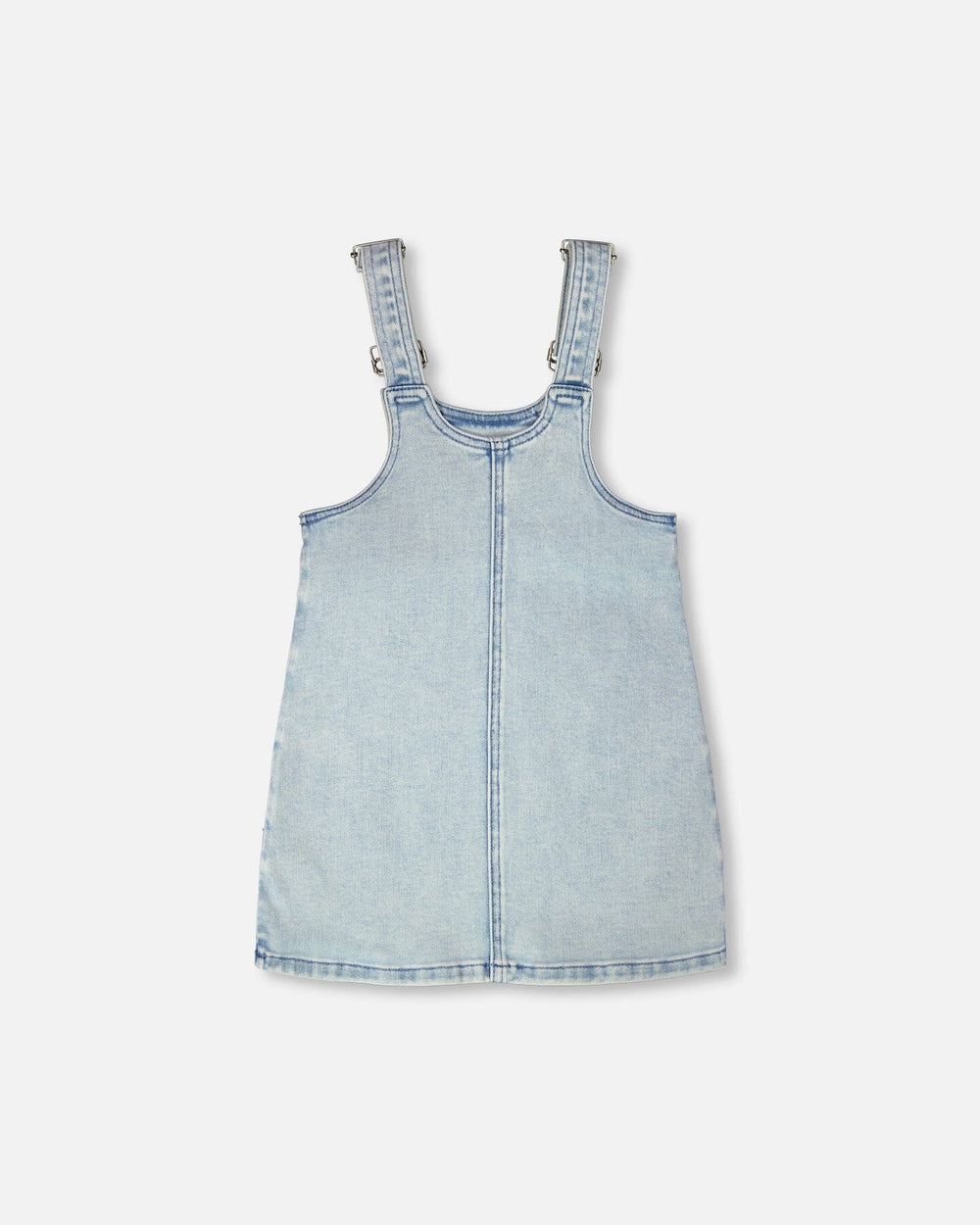 Casual yet chic, our light blue denim overall dress is a versatile piece for playful days. This sleeveless dress features adjustable buckle straps, front patch pockets with embroidered daisies, and a straight cut for effortless layering. Part of the “Explosion of Daisies” collection, it pairs beautifully with any tee or blouse from the line.
