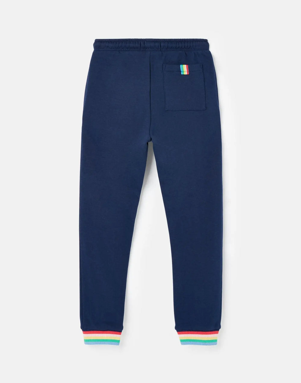 These jogging bottoms will have your little ones feeling super comfy and oh-so-cool this season! They’re crafted from a soft brushed back jersey, have a slim fit through the leg and an elasticated waistband with colour pop functional drawcords. We’ve also added pockets to each side and finished the cuffs with rainbow stripes for that Joules touch.