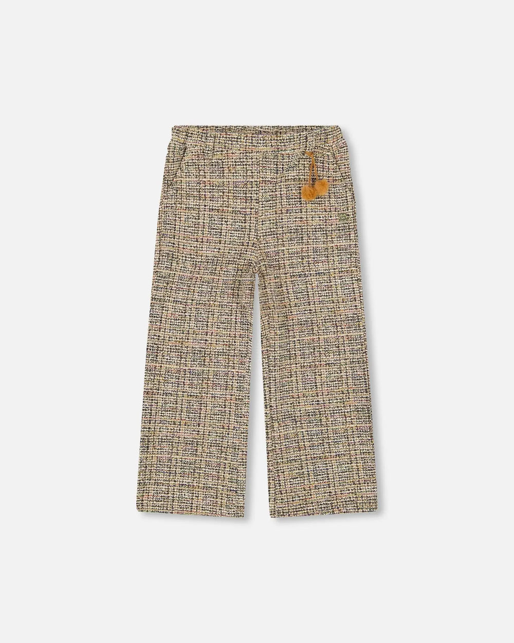 Elegant and comfy, our Tweed Flare Pants Beige and Black are a timeless favorite for fall. These flared trousers are crafted in a stretch jacquard knit with a lurex thread for a subtle shine, and they include front and back pockets plus playful little pompoms at the waistband. Ideal for pairing with any top or sweater from our “Teddy Bears Are Ours” collection for an effortlessly chic look.