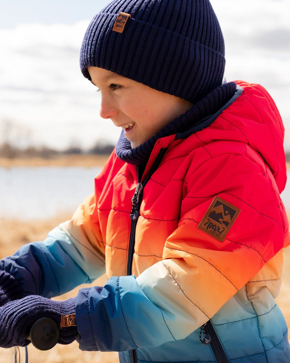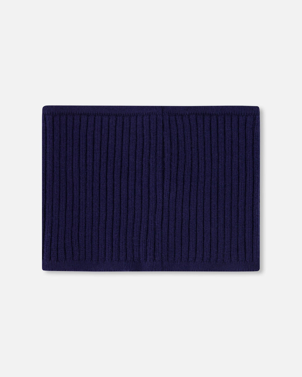 The knit neck tube in navy blue is the perfect lightweight layer for breezy spring days. Soft and cozy, this warm accessory is made from a fine ribbed knit blend of viscose, polyester, and nylon for just the right balance of stretch and comfort, finished with a logo patch. Easy to pull on and wear, this unisex neck warmer keeps kids and babies snug during every outdoor adventure.
