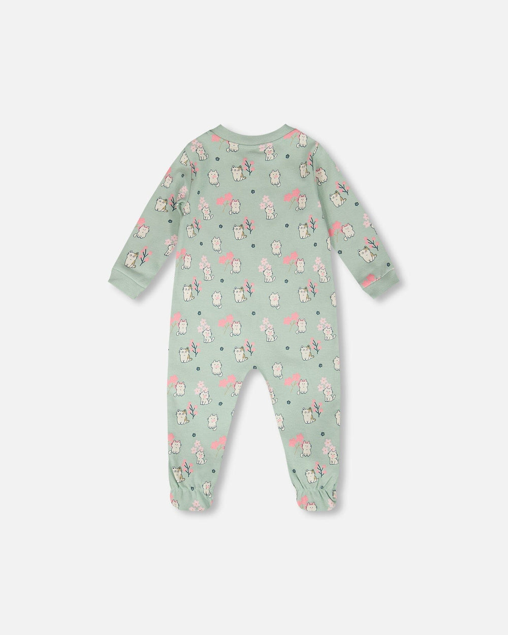 Organic Cotton Baby One-Piece Pyjama Blue Kitten Print