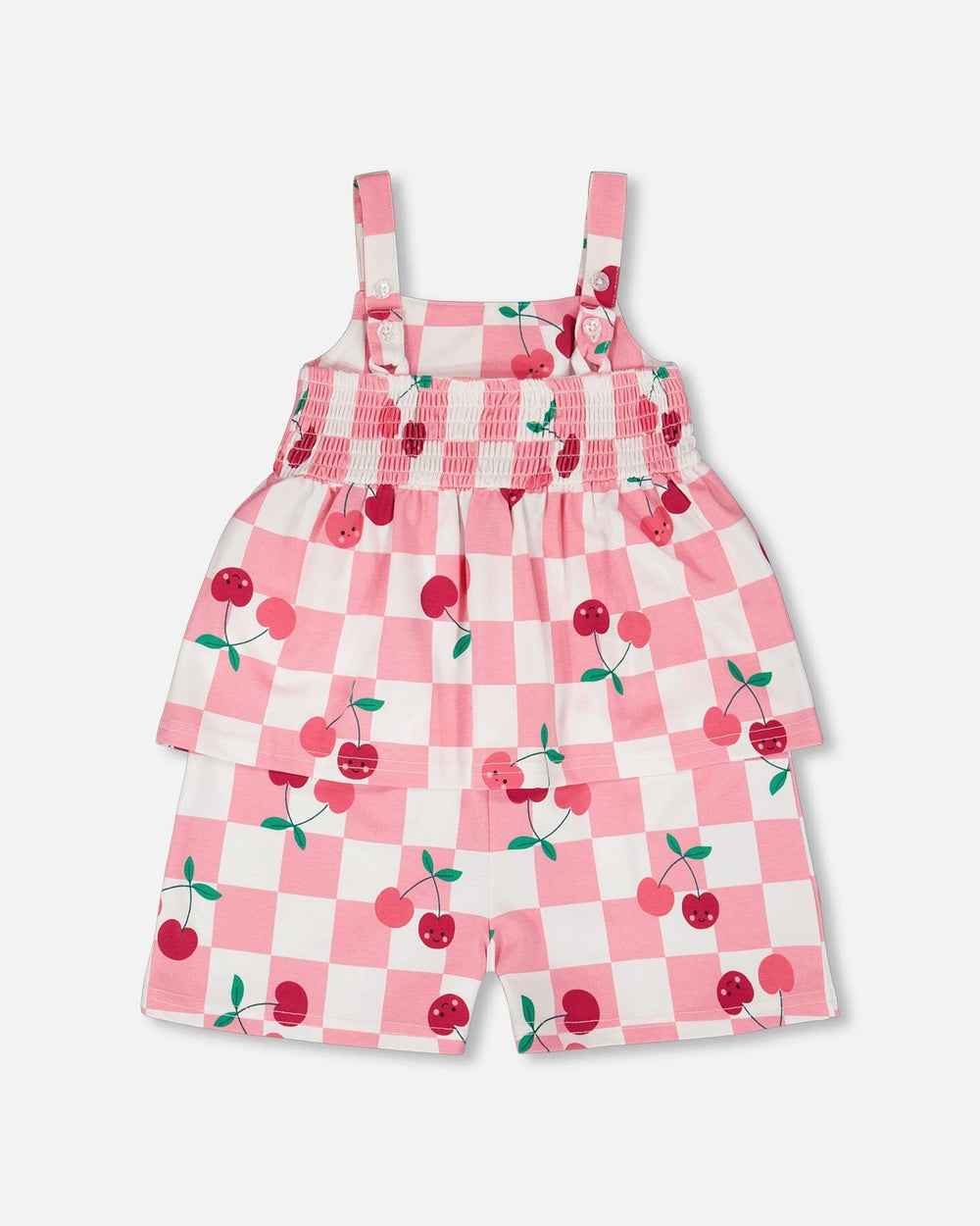 Organic Cotton Jersey Romper Pink Printed Cherries