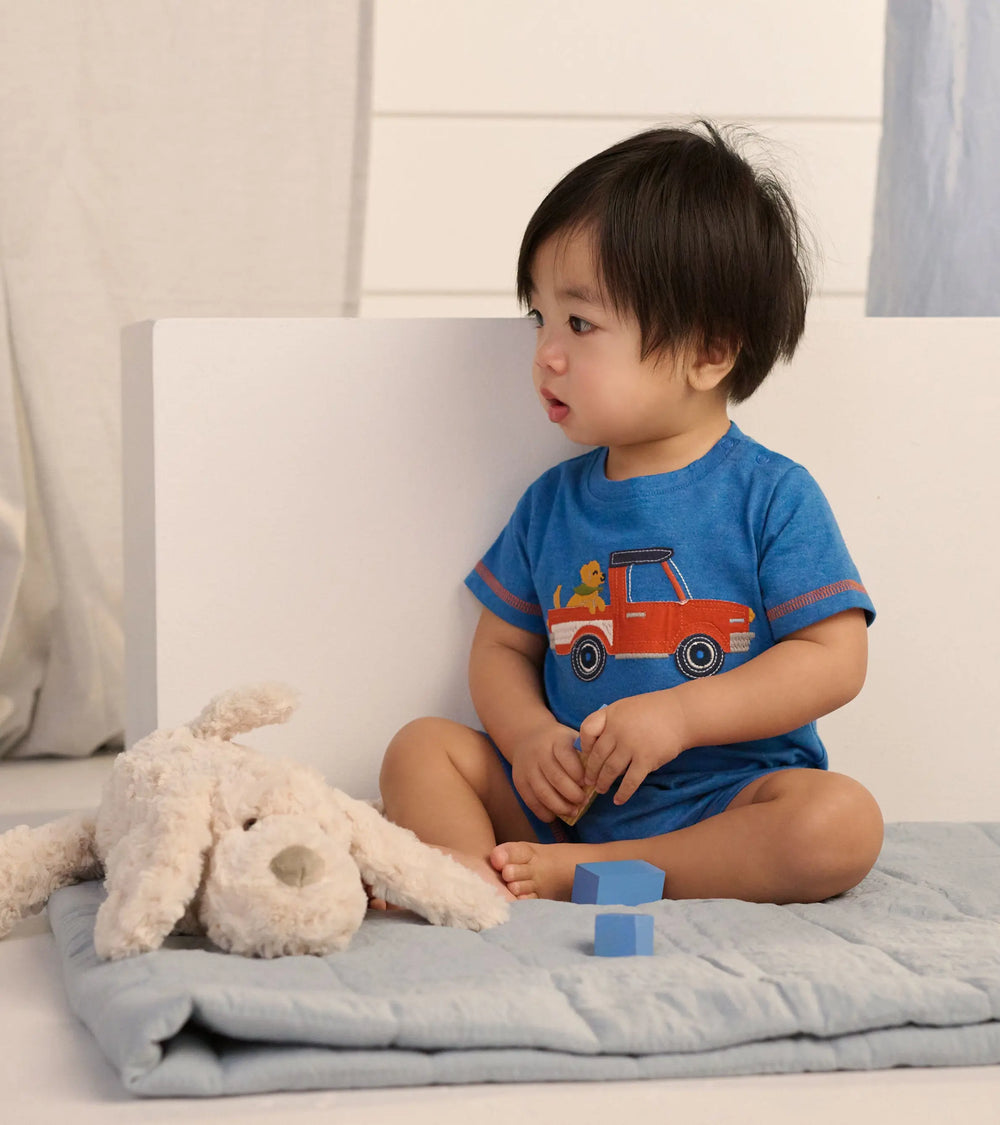 Add some colour, charm and character to their first wardrobes with this remarkable romper! Crafted from soft-against-the-skin cotton and adorned with a fun print and handy popper fastenings, this will become everyone's favourite piece.