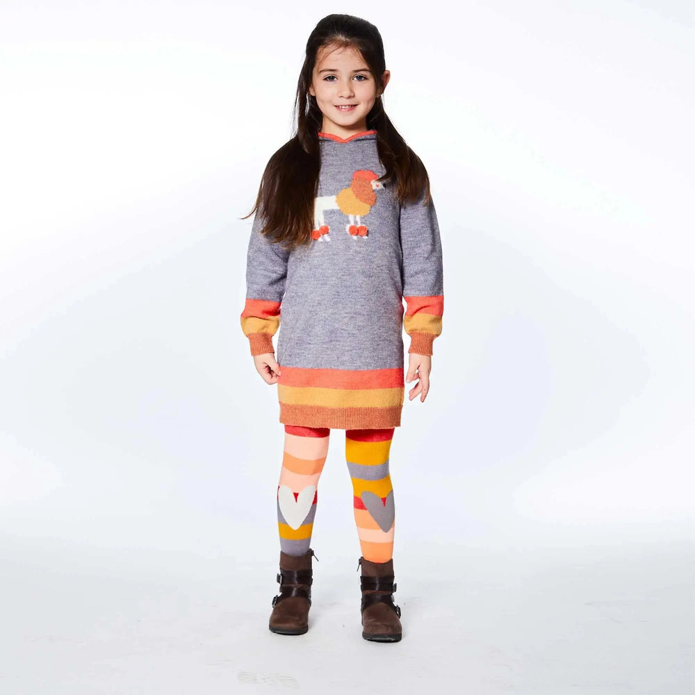Stripes and hearts add color and style to these comfortable stretch tights. Our Striped Tights Pink, Red and Grey are made from a stretch cotton/elastane/nylon blend and feature bold horizontal stripes and a ribbed elastic waistband. They're the perfect complement to any outfit in our Poodle & Co. collection!
